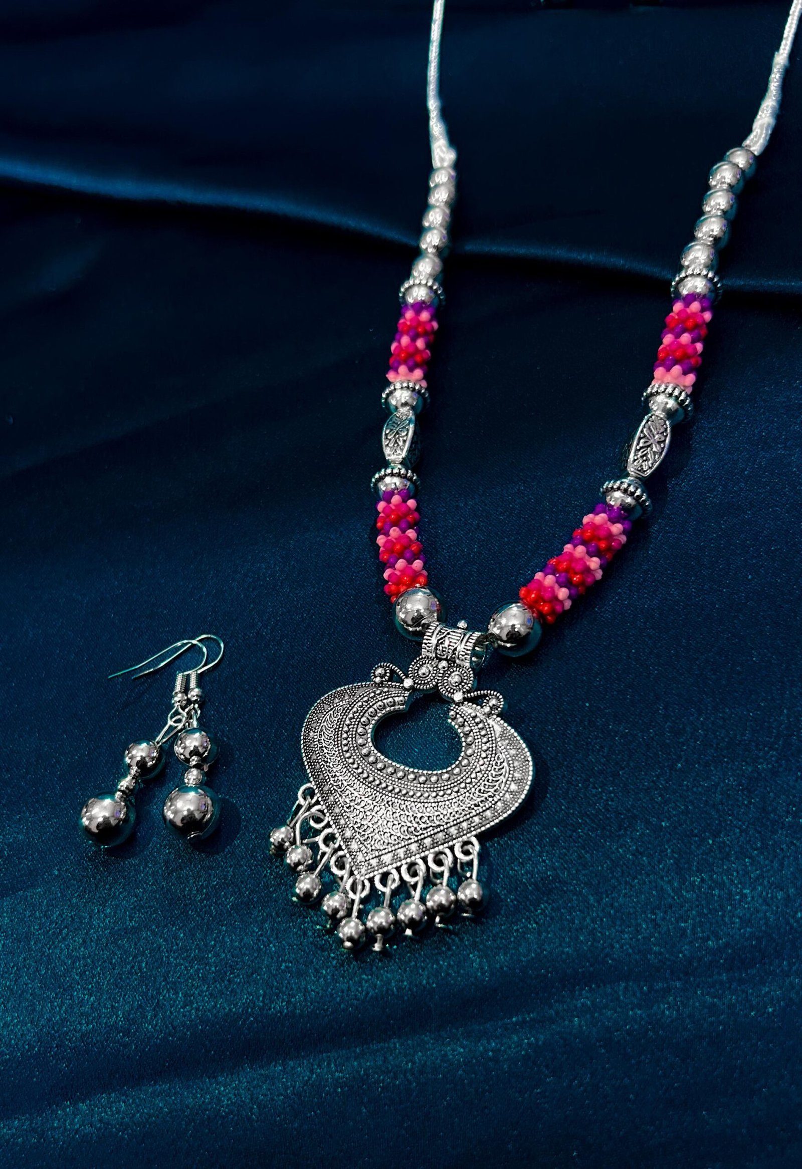 New trending oxidised long necklace with beautiful colors. Stylish antique jewellery for women, perfect for festive, wedding, ethnic & party wear looks.
