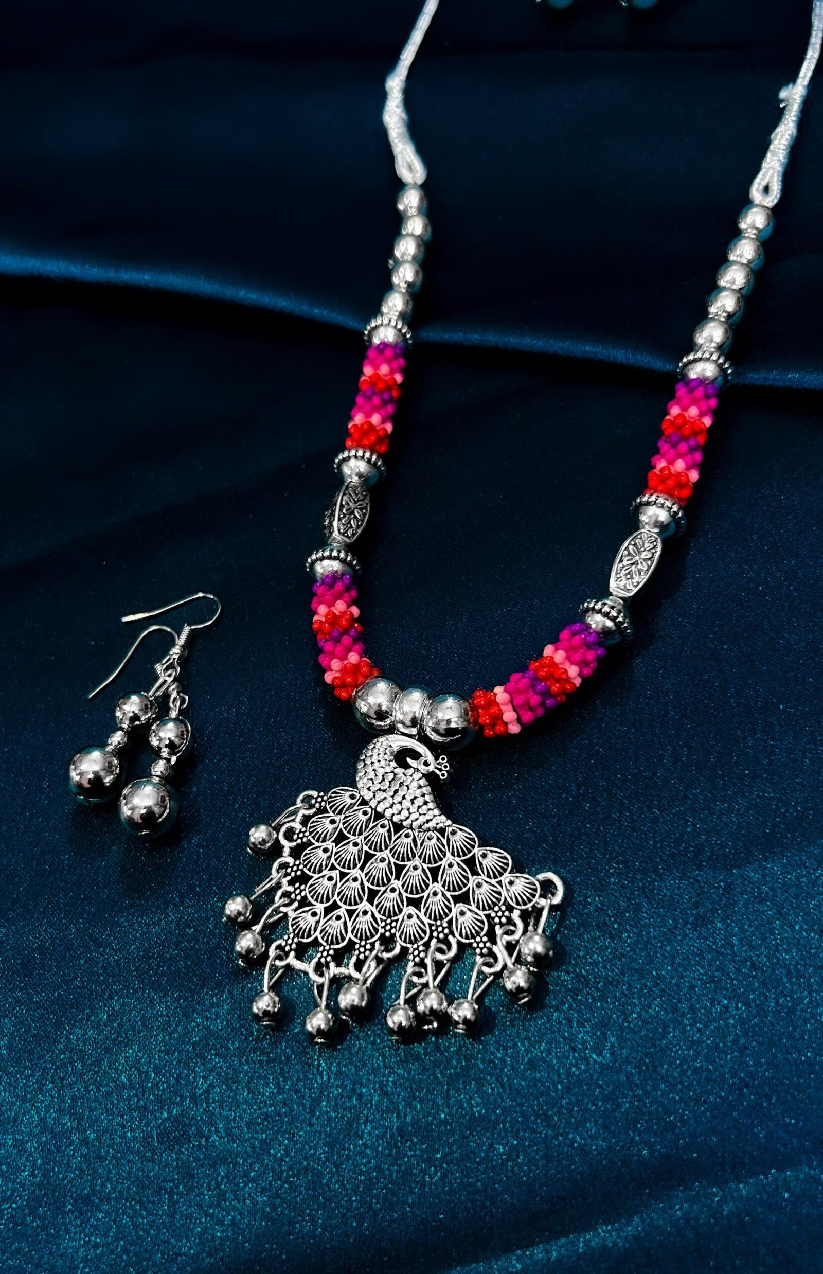 New trending oxidised necklace with peacock design. Antique finish jewellery for women, perfect for ethnic wear, weddings, parties & festive looks.