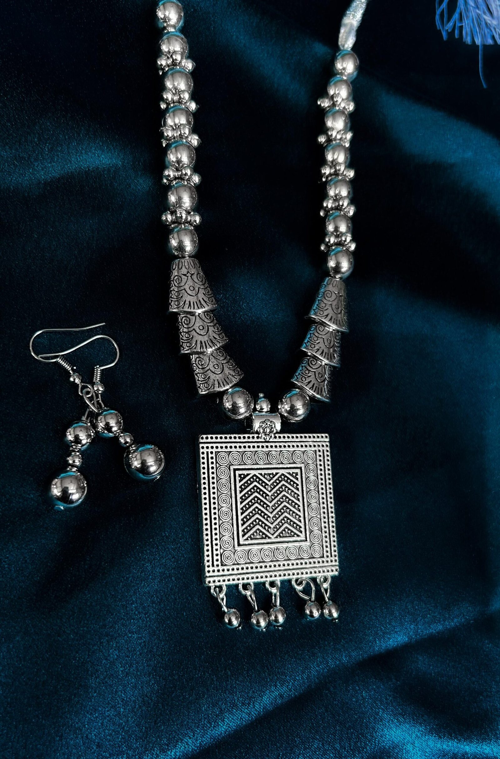 Beautiful oxidised necklace in square shape. A stylish imitation jewellery piece for daily wear and special occasions.